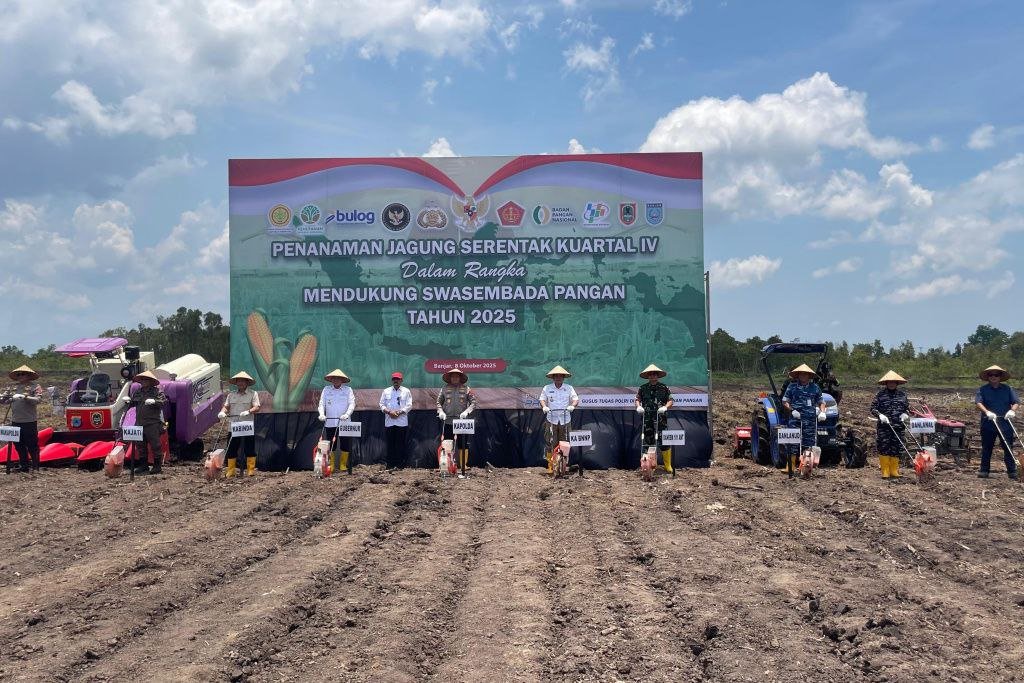 Gubernur Kalimantan Selatan, Muhidin menyatakan dukungan penuh Pemerintah Provinsi Kalimantan Selatan terhadap kegiatan Penanaman Jagung Serentak Kuartal IV Tahun 2025 yang dilaksanakan di lingkungan Polda Kalsel, tepatnya di Jl. A. Yani Km. 17, masuk ke Jalan Gubernur Syarkawi Km. 5, Desa Padang Panjang, Kecamatan Sei Tabuk, Kabupaten Banjar, Rabu (8/10/2025).